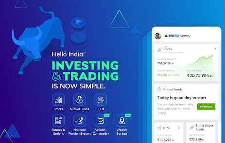 Open your account in Paytm Money and buy stocks that you love, invest in mutual funds, and prepare for your retirement with NPS in just a click.