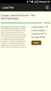 ด้วยแอพพลิเคชั่นนี้คุณสามารถอ่านหนังสือนิยายในรูปแบบ FB2, EPUB, HTML, MHTML, TXT ข้อความถูกมองว่าเป็นเอกสารที่เลื่อนได้ครั้งเดียวโดยไม่ต้องแบ่งหน้า คุณสมบัติหลัก: