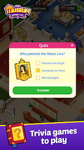As a supervisor, it is your job to take care of all the big and small tasks to keep the business running and the profits coming! To help with that, this idle game also offers a cool Trivia game with lots of cultural quizzes to play! Test your knowledge on different topics like Art, History, Culture, Middle Age, Ancient Civilizations, Music, Science, and get prizes to help you improve the Museum.