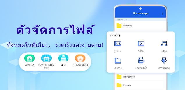 ตัวจัดการไฟล์เป็นเครื่องมือจัดการไฟล์ที่ช่วยให้คุณค้นหาไฟล์ที่จัดเก็บไว้ในอุปกรณ์ได้อย่างรวดเร็วและจัดเป็นคอลเลกชั่นโดยอัตโนมัติ คุณสามารถดู ลบ ย้าย เปลี่ยนชื่อหรือบันทึกไฟล์ใดๆ และค้นหาไฟล์ผ่านการค้นหาดัชนีด้วยตัวกรองอย่างรวดเร็ว