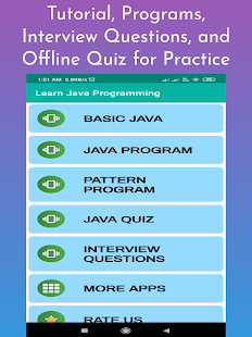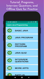เรียนรู้การกระทำ Java แอปเขียนโปรแกรมเป็นคู่มือที่ครอบคลุมเพื่อหนึ่งในความนิยมมากที่สุดในการเขียนโปรแกรมภาษาในโลก App นี้จะช่วยให้คุณสามารถที่จะดำเนินการสอนการเขียนโปรแกรม Java ในโทรศัพท์ Android ของคุณ มันมีไม่มาก รหัสการเขียนโปรแกรมที่แตกต่างกันและมีไม่มาก คำถามสำคัญที่เกี่ยวข้องกับการสัมภาษณ์