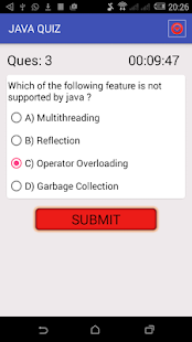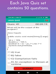 นอกจากนี้การตรวจสอบนี้มีอินเตอร์เฟซผู้ใช้ที่ง่ายมากและเนื้อหาที่สามารถเข้าใจได้ง่ายโดยผู้ใช้ ผู้ใช้ไม่จำเป็นต้องมีการเชื่อมต่ออินเทอร์เน็ตไปยังอุปกรณ์ของเขา / เธอในขณะที่การฝึกซ้อมของแบบทดสอบออนไลน์และ Java ยังสำหรับการเรียนรู้บทเรียนและโปรแกรม Java app นี้สามารถใช้ได้สมบูรณ์ฟรีเพื่อดาวน์โหลดและอัปเดต