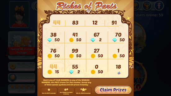 Match your skill level by playing one to four cards at a time. Use power-ups to claim more Bingos and win bigger prizes. Play Bingo in Vegas, Paris, and other fun locations. Each theme has its own scratch-off ticket where you can win BIG BONUSES! Compete with other players from around the world on the global leaderboards. Easy to use controls and simple gameplay make Bingo Online fun for players of all ages.