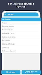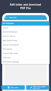 - App Provides common letter formats for various type of letter such appointment letter, Business Proposal, Invoice, Performance Appraisal Letter, Thank you letter, Contract Offer Letter