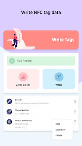 - NFC Tag Reader เป็นแอปที่ให้คุณอ่าน เขียน และทำงานบนแท็ก NFC และชิป NFC ที่เข้ากันได้อื่นๆ