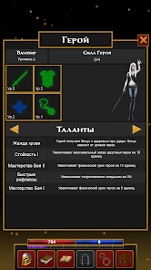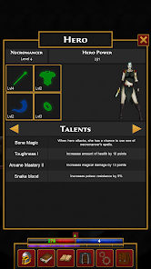 Select one of available heroes, each with unique abilities and stats. Also each hero level you will able to select talent, talents can increase stats of your hero or grant unique and powerful abilities.