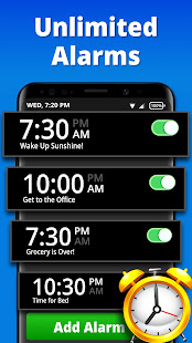 นาฬิกาปลุก สำหรับคนหลับลึกพบกับคู่ที่สมน้ำสมเนื้อแล้ว นาฬิกาปลุกฟรี มีเสียงดังและมีทางเลือกการปลุกหลายวิธี เช่น การแก้โจทย์ปัญหาคณิตศาสตร์เพื่อปิด เสียงปลุก, ทำภารกิจต่างๆ, ตัวเลือกการเลื่อนปลุกหลายแบบ พร้อมการตั้งค่าเสียงสำหรับ การปลุกอัจฉริยะ ที่เลือกได้เองสำหรับนาฬิกาปลุกของคุณ