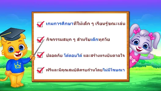 เรียนรู้สีและรูปร่างสำหรับเด็กเป็นภาษาไทย ดาวน์โหลดเกมสำหรับเด็กที่น่าทึ่งนี้เพื่อเรียนรู้และเล่นกับสีและรูปทรง!