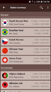 • Several currencies at once on the main screen for simultaneous conversion