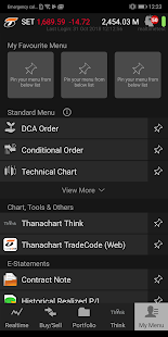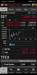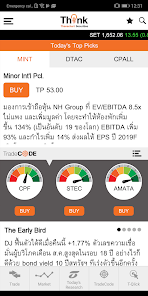 Think เป็นโปรแกรมซื้อขายหุ้นและอนุพันธ์แบบ Multi-Market ผ่าน Android พัฒนาขึ้นโดย บริษัท เซ็ทเทรด ดอท คอม จำกัด ด้วยเทคโนโลยีที่ทันสมัยบวกกับอินเตอร์เฟซที่ใช้งานง่าย ช่วยให้คุณสามารถวิเคราะห์และตัดสินใจลงทุนทั้งหุ้นและอนุพันธ์ได้อย่างแม่นยำและทันท่วงที