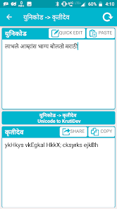 As Mangal is Unicode font used to type in Marathi and Hindi so this app helps to convert Mangal font marathi/hindi text into Shree Dev, Kruti Dev and India Font ASM Calligraphy fonts.