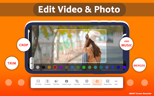 SMART Screen Recorder is not only a screen video recorder, but also it can capture phone screens, edit images. You can take photos easily with one tap, Cut, Crop, Draw, Collage...