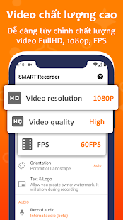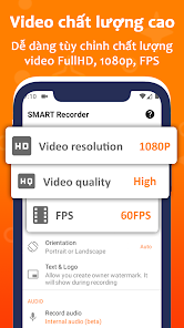 SMART Screen Recorder supports game screen recording with high quality: 1080p, 60FPS... Freely customize the parameters of video quality, screen resolution (resolution), rotate in any direction both vertical and horizontal very smoothly and quality.