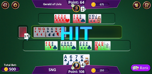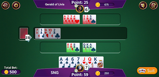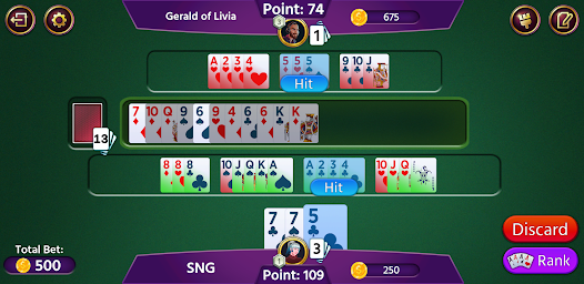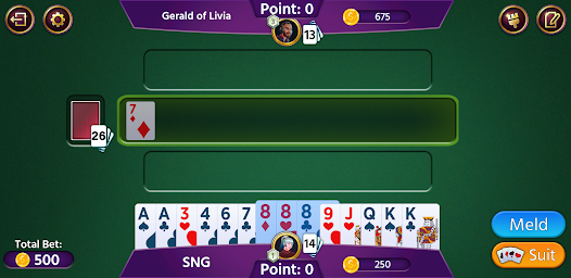 เกมไพ่รัมมี่ 500 ออฟไลน์เล่นกับไพ่ 52 ใบพร้อมโจ๊กเกอร์ ผู้เล่นแต่ละคนจะได้รับไพ่ 13 ใบและสามารถเล่นได้ 2-4 ผู้เล่น
