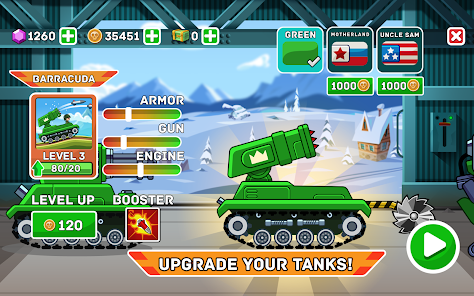 แข่งทางของคุณผ่านเนินเขาและบดขยี้ศัตรูของคุณด้วยเหล็ก รวบรวมของขวัญจากศัตรูที่ล้มลงและเพิ่มยานพาหนะของคุณด้วยการอัพเกรดที่ดีที่สุดและอาวุธพิเศษที่คุณหาได้ ปลดล็อกรถถังที่ปรับแต่งได้ใหม่และต่อสู้ในแบบของคุณอย่างกล้าหาญจากสนามรบหนึ่งไปยังอีกที่หนึ่งไปจนถึงดวงจันทร์แห่งอนาคต รับลายทางของคุณโดยชนะการต่อสู้รถถังทีละครั้งและไต่อันดับเพื่อเป็นจอมพลสงครามที่ยิ่งใหญ่ที่สุดเท่าที่โลกเคยเห็นมา!