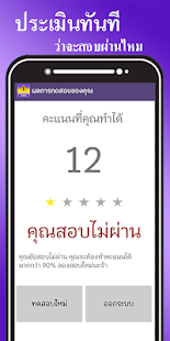 - ระบบทำข้อสอบใบขับขี่จริง ระบบจะทำการสุ่มข้อสอบจำนวน 50 ข้อ แบบเดียวกันกับการสอบที่ขนส่งจริง ให้คุณได้รู้ทันทีว่าจะสอบผ่านหรือไม่