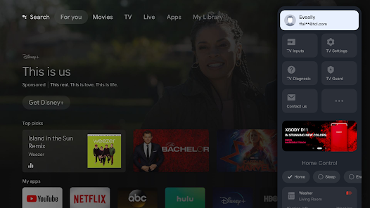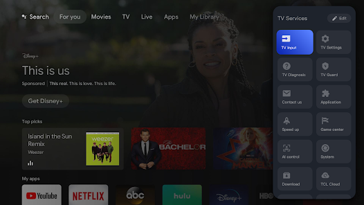 แดชบอร์ดหลักของ TCL คือแผงทางลัดของ TCL TV ซึ่งสามารถเปิดแอปพลิเคชัน จัดการบ้านอัจฉริยะ และดูข่าวล่าสุดได้อย่างรวดเร็ว