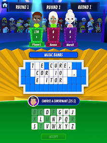 The mechanics of the game are similar to Hangman game: you must play against two more players to get the word or sentence hidden in the panel. To do this, you will have to spin the wheel of luck, choose the vowels and consonants you want and win the maximum possible points in each game. Beware of falling into the bankruptcy cell!