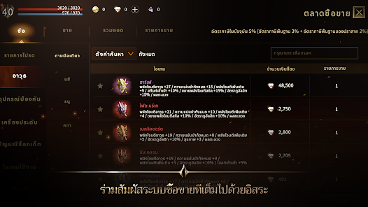 ◐ การซื้อขาย : ท่านจะสามารถซื้อขายสิ่งของที่จำเป็น เช่น อาวุธ, อุปกรณ์ป้องกัน, ตำราสกิล และอื่น ๆ ได้อย่างอิสระ