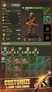 สำรวจโลกหลังหายนะรอบๆ ที่พักพิงของคุณ ปล้นสะดมอุปกรณ์และอาวุธสำหรับคลังแสงของคุณในภารกิจต่อสู้ ฝึกฝนทีมของคุณเพื่อเตรียมอาวุธใหม่สำหรับปฏิบัติการกู้ภัย ปลดปล่อยเชลยจากคุกของศัตรูและเสริมกำลังทีมของคุณ บันทึกอาวุธที่ทรงพลังสำหรับการเผชิญหน้าอย่างหนักกับรถถังและพลซุ่มยิง ww2