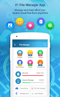 แอพตัวจัดการไฟล์ฟรี ใช้งานง่ายมากด้วยตัวจัดการไฟล์ตามหมวดหมู่: รูปภาพ, เพลง, ภาพยนตร์, เอกสาร, แอพ,...
