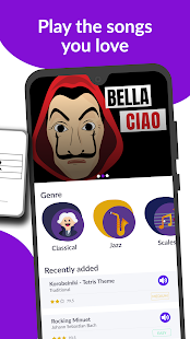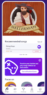- เริ่มด้วยบทเรียนแรกของคุณเกี่ยวกับโน้ตดนตรีหรือเลือกจากเพลงมากมาย