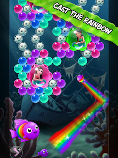 Bubble Fins is a simple, yet addictive bubble shooter / bubble popper game for all ages. Aim and bust through bubbles to rescue mermaids. Pop your way to the mermaids by matching your fish's color with two or more bubbles of the same color. Choose between multiple power-ups, like rainbow or puffer fish, with different special attacks. Burst higher balls to drop lower balls from the mass. No witches, no mania – just interesting puzzles, amazing graphics, beautiful music, and the cutest fishes around. Blitz through Atlantis, past Sunken Ship Island, and get hooked in this undersea adventure.