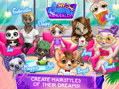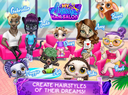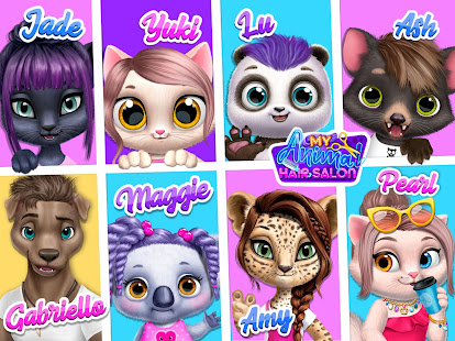 Style hair for kids' beloved and brand new characters: leopard Amy, panda Lu, cat Pearl, baby koala Maggie, Tasmanian devil Ash, dog Gabriello, corgi Bagel, goat Daisy, little cat Yuki, black panther Jade and their new animal friends — cute deer Abby and pink llama Gwen!