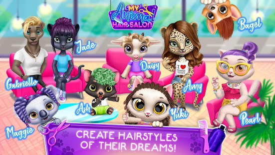 Experiment with all the hair salon tools and create the most mind-blowing hairstyles for the animals! Brush and move hair freely in any direction. Dye it in any color of the rainbow!