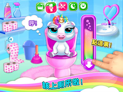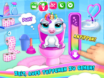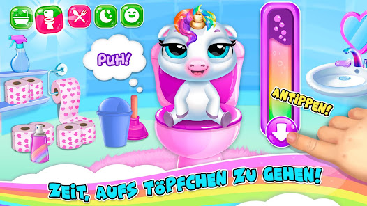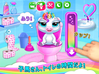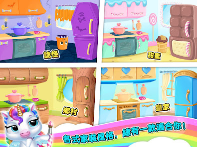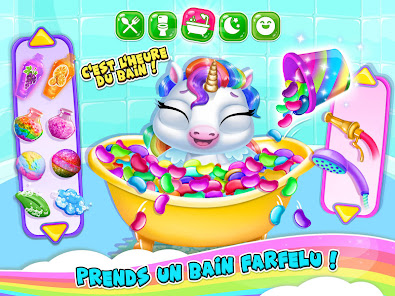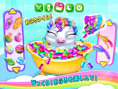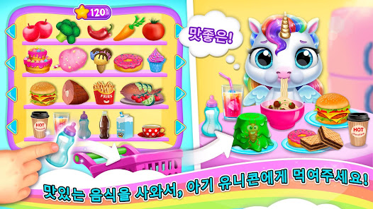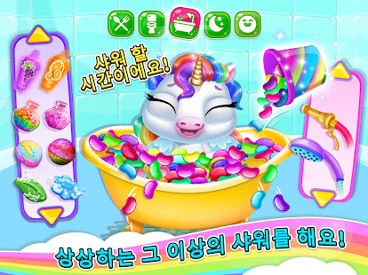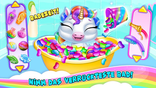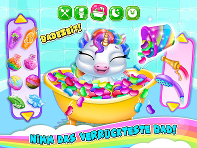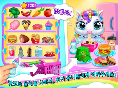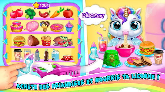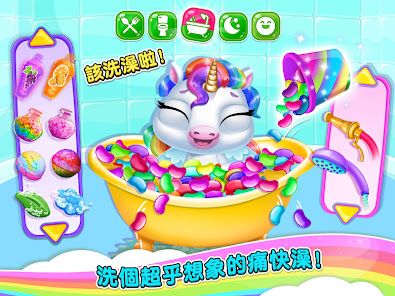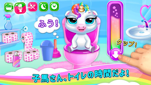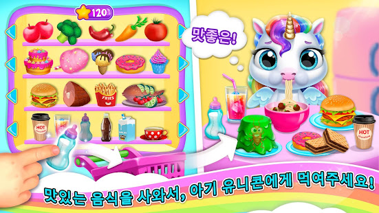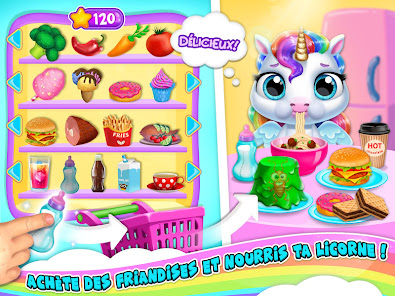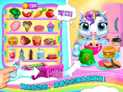 ยูนิคอร์นของคุณเป็นนักชิมตัวยง! ไปช้อปปิ้งของชำและซื้อผลไม้ ขนม และเครื่องดื่มแสนอร่อย! อาหารอร่อยมากมายที่จะเลี้ยงม้าสายรุ้งของคุณ! ได้เวลาไปไม่เต็มเต็งแล้ว! ล้างม้าเสมือนจริงของคุณและลองระเบิดน้ำและสบู่บ้า! เมื่อยูนิคอร์นตัวน้อยของคุณเหนื่อย ร้องเพลงให้ลูกน้อยนอนหลับบนเตียงแสนสบายของมัน ดูสัตว์เลี้ยงเสมือนจริงของคุณเติบโตจากลูกม้าแรกเกิดตัวเล็ก ๆ ไปจนถึงยูนิคอร์นสีรุ้งแสนสวย! คุณเป็นพี่เลี้ยงม้าที่ดี!