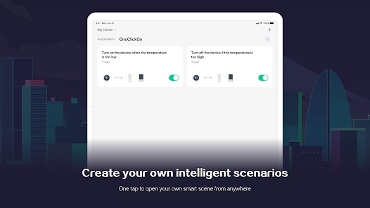 ผ่อนคลายและผ่อนคลายในขณะที่แอปที่เป็นมิตรต่อผู้ใช้จะดูแลระบบอัตโนมัติในบ้านซึ่งเกิดจากปัจจัยทั้งหมด เช่น สถานที่ ตารางเวลา สภาพอากาศ และสถานะของอุปกรณ์