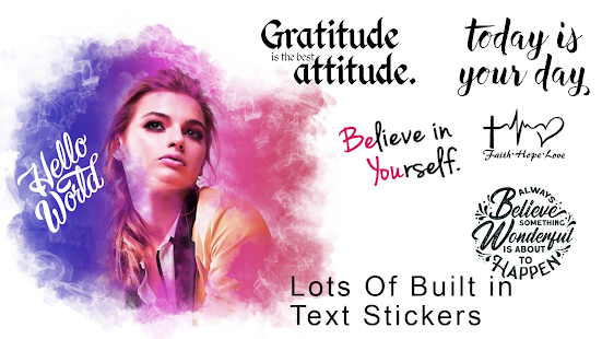 ตอนนี้เพิ่มข้อความบนรูปภาพอย่างง่ายๆ และทำให้รูปภาพของคุณดูไม่เหมือนใครด้วยการเพิ่มคำพูดบทกวีที่มีชื่อเสียง คุณสามารถสร้างรูปภาพที่คุณต้องการและตกแต่งด้วยสติกเกอร์ชุดใหม่จำนวนมาก และสามารถเพิ่มแบบอักษรได้หลายแบบเช่นกันโดยพิมพ์ข้อความรูปภาพในแอปรูปภาพที่ดีที่สุด