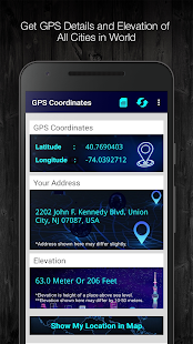 GPS Coordinates and Location App lets you get your GPS Details, Address and Elevation of your Current Location and All other Locations in the World.