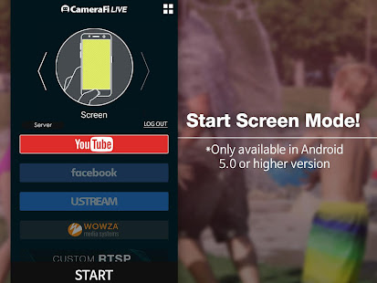 เลือกโหมดกล้องหรือโหมดหน้าจอเพื่อออกอากาศวิดีโอจากกล้องหรือหน้าจอสมาร์ทโฟน