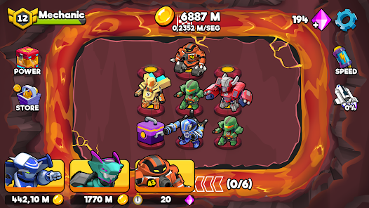 นอกจากนี้ คุณยังสามารถได้รับการอัพเกรดสำหรับอาณาจักรของคุณ! การผสานแต่ละครั้งจะมีโอกาสสร้าง GEMS หรือ POWER ใหม่ที่สดใส คุณจะได้รับ x2 เท่าของรายได้ปัจจุบันในขณะที่คุณไม่อยู่ รายได้ x2 เท่า การอัปเกรดหุ่นยนต์ของคุณมีค่าใช้จ่ายน้อยลง 50% หรือแม้แต่โรงงานของคุณจะได้รับรายได้เร็วขึ้น 100% !