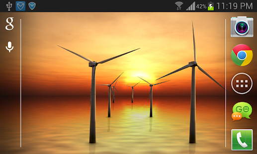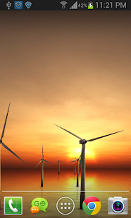 นี้เป็นวอลล์เปเปอร์ฟรี มันเป็นเรื่องเกี่ยวกับกังหันลมซึ่งจะแสดงในพระอาทิตย์ตกที่สวยงาม และตอนนี้ก็สามารถแสดงผลในโทรศัพท์ของคุณ และมันก็จะเปิดตามลม และคุณจะพบว่ากังหันลมจะกลับภาพในทะเล มันเป็นความงามดังนั้น