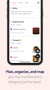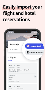 เข้าถึงเที่ยวบิน โรงแรม และสถานที่ท่องเที่ยวในแอปเดียว ส่งต่ออีเมลยืนยันเที่ยวบินและโรงแรมเพื่อนำเข้าโดยตรงในแผนการเดินทางของคุณ หรือเชื่อมต่อ Gmail ของคุณเพื่อเพิ่มโดยอัตโนมัติ ต้องการรักษาแผนระดับสูง? ทำรายการทั่วไปเช่น 'สิ่งที่ต้องทำ' และ 'ร้านอาหาร' ที่คุณต้องการกิน กำลังเดินทางตามกำหนดเวลาที่แน่นหนาและต้องการสร้างรายละเอียดการเดินทางใช่หรือไม่ จัดระเบียบวันของคุณโดยเพิ่มเวลาเริ่มต้น (และสิ้นสุด) เหมาะอย่างยิ่งสำหรับการติดตามตั๋วและการจอง