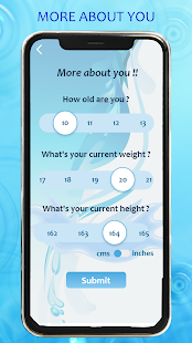 Individuals who screen well-being realize that keeping up the body's water balance, you need to drink water day by day. Please make use of this most helpful water reminder application to follow your day by day water intake. The standard intake of water of an individual is determined based on an individual's age, body weight, loads and ecological conditions. Our water reminder application figures your daily water intake, allows and reminds you to drink water each day in frequent intervals until you arrive at your daily water intake goal.