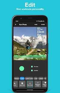 ออกแบบและปรับแต่งรูปภาพและวิดีโอการออกกำลังกายของคุณโดยเพิ่มสถิติการวิ่ง ภาพซ้อนทับ และกราฟิกเพื่อบันทึกและแชร์บน Instagram, Facebook และโซเชียลมีเดีย ใช้การออกกำลังกายฟิตเนสจาก Strava และ Garmin เพิ่มกราฟิกออกกำลังกายลงในวิดีโอ ภาพถ่าย แผนที่ หรือพื้นหลังอื่นๆ Run Photo นั้นฟรีทั้งหมด เปรียบเทียบกับ Workoutsnap, Stampyc, Velogram