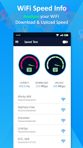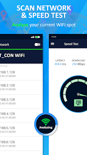 การทดสอบความเร็ว WiFi และคุณสมบัติตัววิเคราะห์ Wifi จะวิเคราะห์และเพิ่มประสิทธิภาพเครือข่าย WiFi ของคุณ คุณสามารถตรวจสอบความแรงของสัญญาณและค้นหาสถานที่ที่ดีที่สุดที่ไม่พบสัญญาณรบกวน แอพนี้จะแสดงความเร็วในการอัพโหลดและดาวน์โหลดข้อมูล wifi ที่แม่นยำด้วย