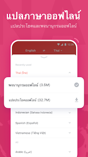 การแปลออฟไลน์ : แม้ว่าคุณจะออฟไลน์คุณก็สามารถดาวน์โหลดแพ็กเกจการแปลออฟไลน์ฟรีใน 58 ภาษา