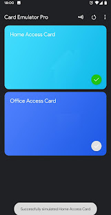 4. Clicking the card's "simulate" button, simulates the chosen card. Now just touch your phone on an NFC Reader and watch the magic happen!
