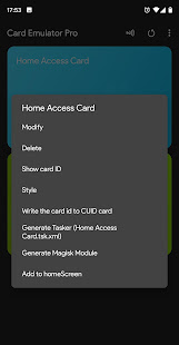 A powerful NFC Card Emulator that simulates various types of cards, for example, access cards, elevator cards, factory (meal) cards, school (meal) cards, some library cards, and other IC cards. (Not guaranteed to work for everyone)