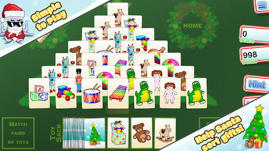 Get off to a festive start this holiday season by helping Santa sort out the presents in Christmas Tree Solitaire! Simply remove pairs of toys to empty the Christmas tree and win the round. Don't worry if you get stuck, Santa is on call to give you a helping hand!