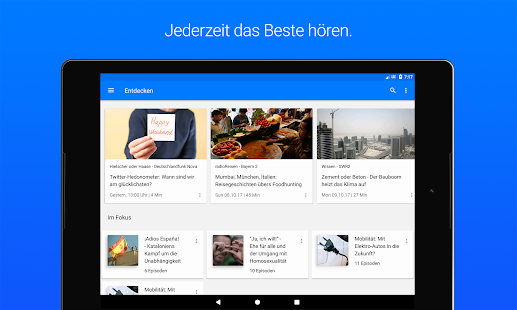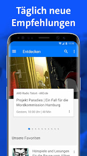 Ob Hörspiele, Krimis, Comedy, Dokus, Reportagen, Wissen oder Geschichte: Täglich neu präsentiert Ihnen unsere Redaktion die besten Sendungen und Geheimtipps. Ob thematische Sammlungen oder Highlights aus dem Angebot der ARD-Radiosender: Unter Entdecken finden Sie immer etwas, das Sie interessiert. Auch die Livestreams der ARD-Radiosender können Sie in der ARD Audiothek abrufen.