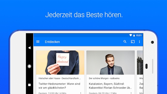 Hören Sie, was Sie wollen, wann Sie wollen. Ob Hörspiel, Wissen, Dokumentation oder Comedy - mit der ARD Audiothek kommen die Premium-Inhalte aus den Radioprogrammen der ARD und des Deutschlandradios direkt auf Ihr Smartphone.