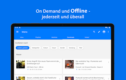 Kein mobiles Internet? Kein Problem. Sie können Audios einfach offline speichern und unterwegs nachhören. Mit Android Auto können Sie die ARD Audiothek mit dem Android-System Ihres Autos verbinden und auf jeder Fahrt hören, was Sie möchten. Sie können die Wiedergabe auch auf externe Geräte übertragen.