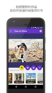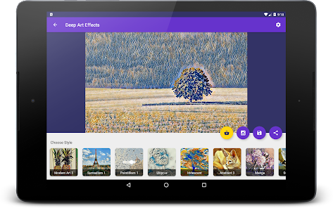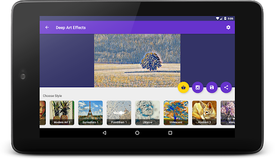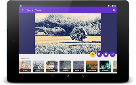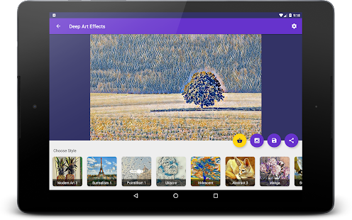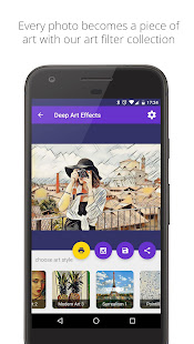Share the unique and awesome artworks you created with hashtag #deeparteffects to the social media platforms such as Instagram, Facebook or Twitter and impress your followers. Become an deep artist with the help of machine learning algorithms using artificial intelligence in combination with neural networks! Draw in the style of artists such as Van Gogh, Monet, Leonardo da Vinci, Michelangelo, Picasso, Raphael, Rembrandt, Dali and many others! Please note: The image rights always remain with the user. Artworks and pictures are not passed to third parties.