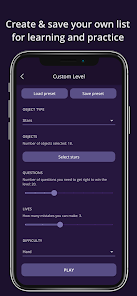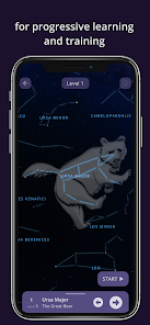 - สามโหมดการฝึกอบรมและการทดสอบสำหรับแต่ละระดับ (ง่าย ปานกลาง และยาก) เพื่อช่วยให้คุณก้าวหน้าอย่างราบรื่นและแนะนำคุณให้รู้จักกลุ่มดาว ดวงดาว และ DSO ในท้องฟ้ายามค่ำคืนที่แท้จริงในที่สุด
