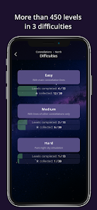 ระดับง่ายจะแสดงเส้นของกลุ่มดาว ทำให้ประสบการณ์ไม่เหมือนกับท้องฟ้ายามค่ำคืนจริง แต่เป็นขั้นตอนแรกของการเรียนรู้